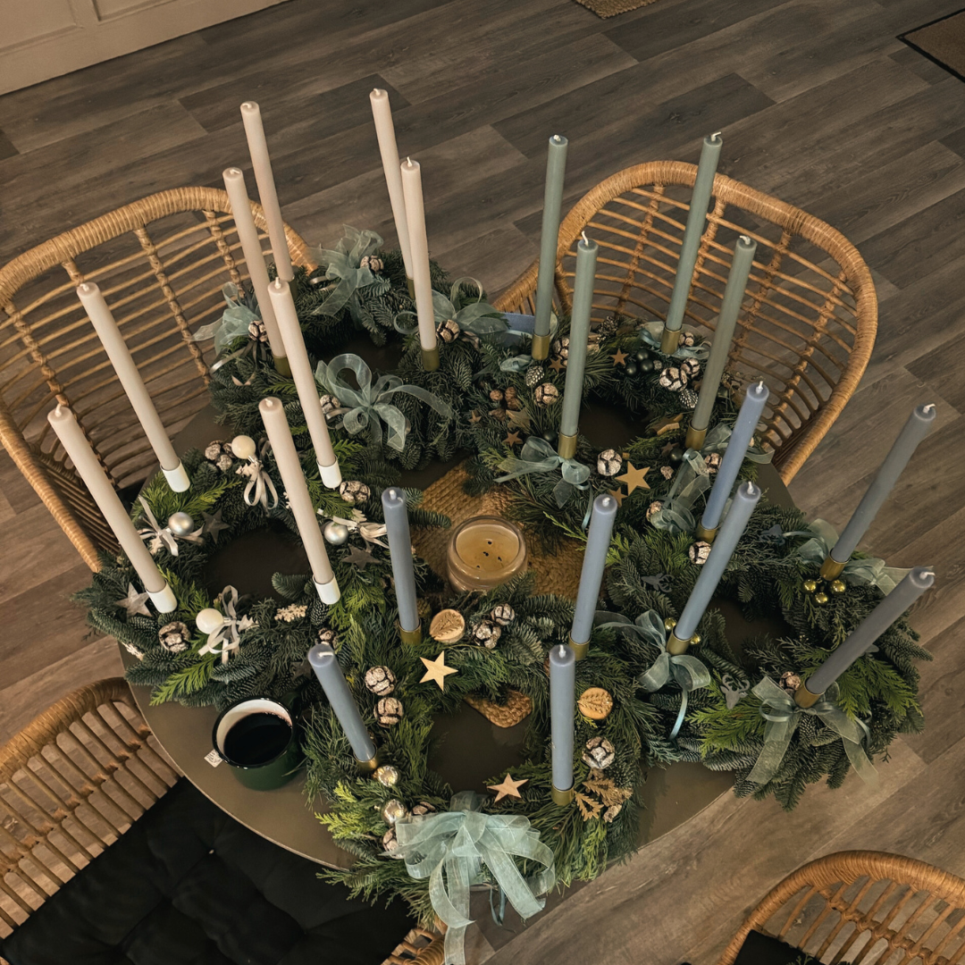 Mit vorbereiteten Rohlingen, einer Auswahl an Kerzen und vielfältigen Dekorationselementen konnte jeder Mitarbeitende einen persönlichen Kranz gestalten. Die entstandenen Designs spiegelten die Kreativität und den Teamgeist unseres Unternehmens wider.
