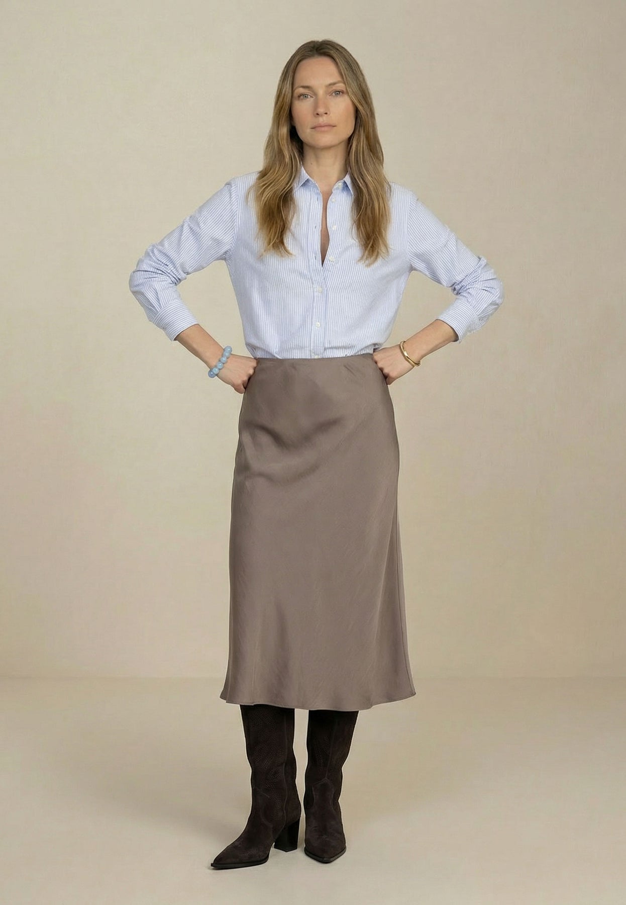 Unser Model ist 1,76m groß und trägt Größe S, das entspricht Konfektionsgröße 36