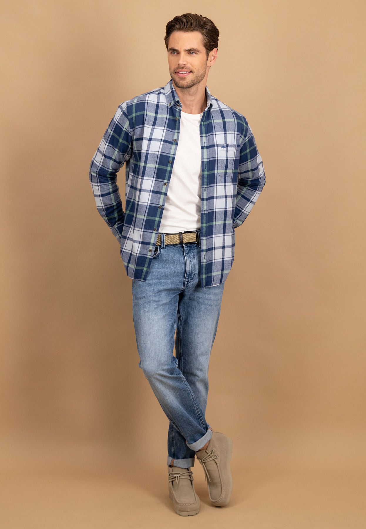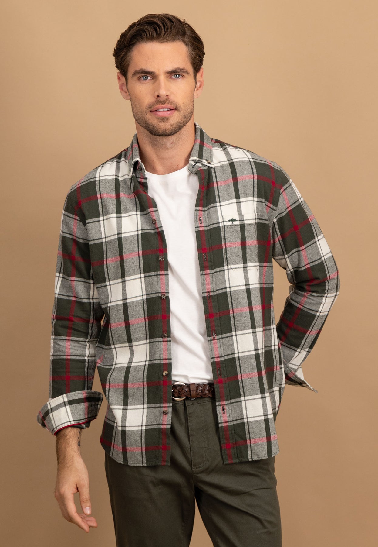 Das markante Karomuster in kräftigen Farbtönen verleiht diesem Hemd eine rustikale Ausstrahlung mit modernem Charakter – ideal für entspannte Freizeitlooks.