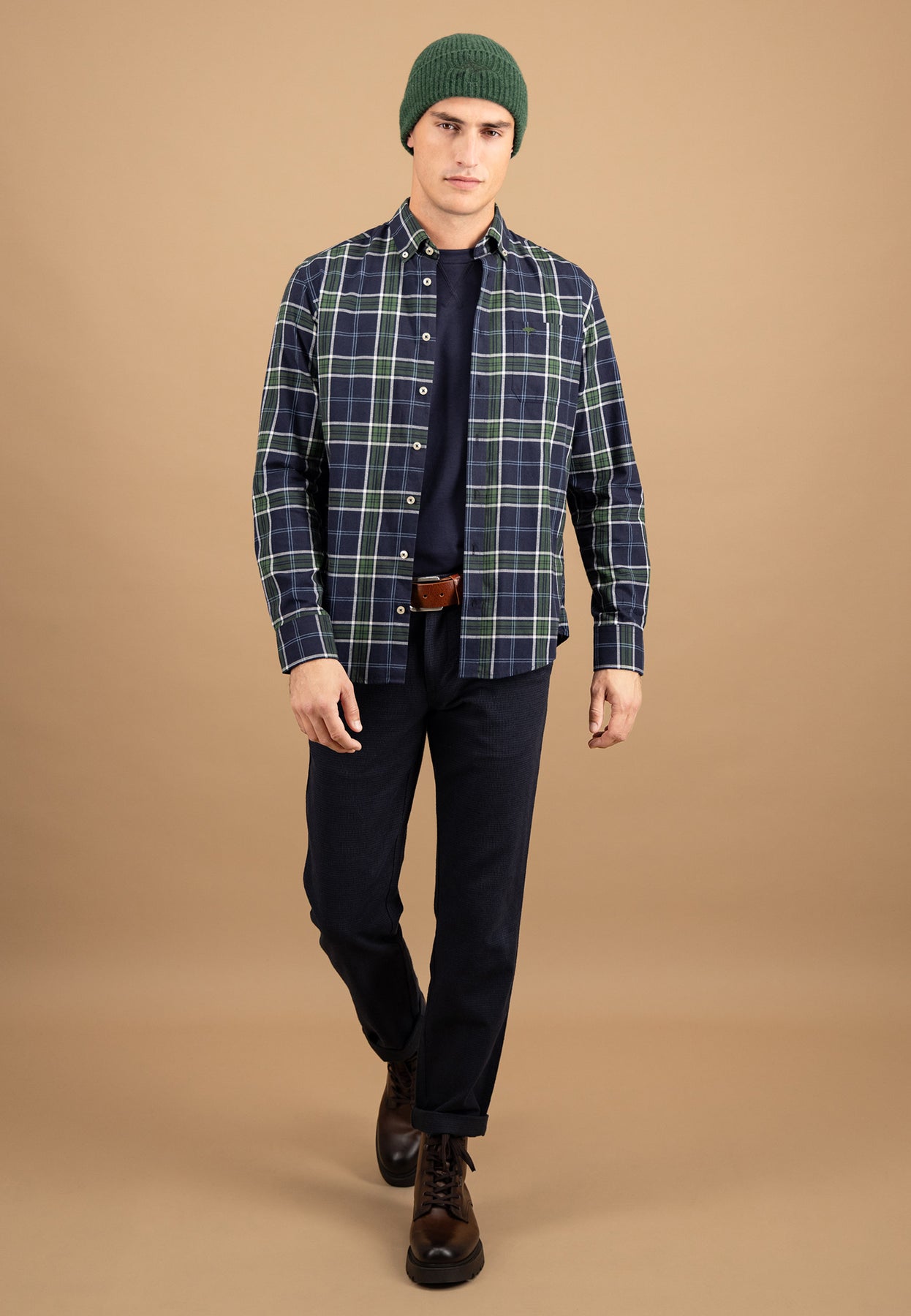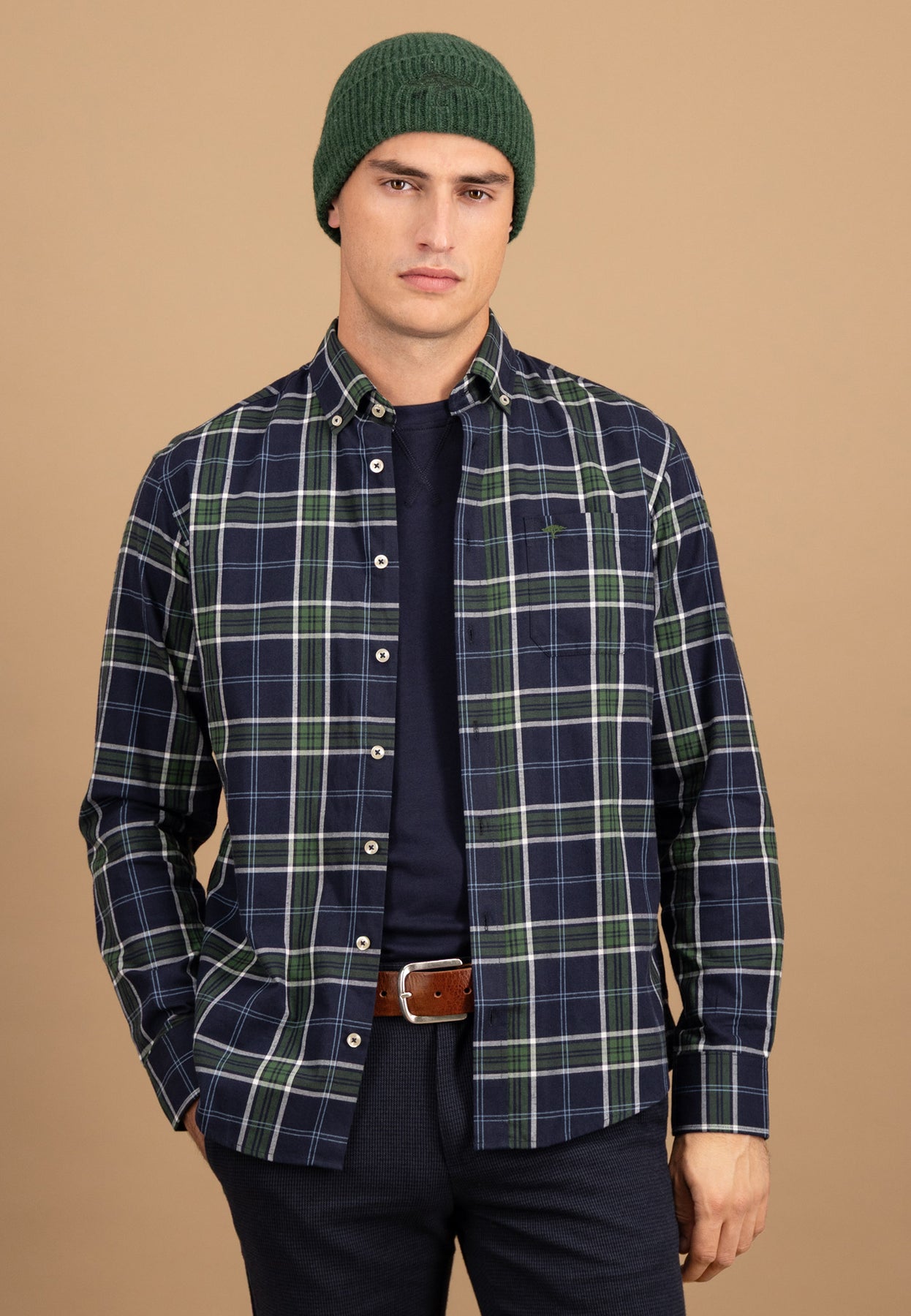 Das markante Karomuster in Grün und Blau macht dieses Hemd zu einem stilvollen Klassiker mit sportivem Anspruch. Der Button-Down-Kragen ergänzt das Design funktional und sorgt für eine gepflegte Silhouette.