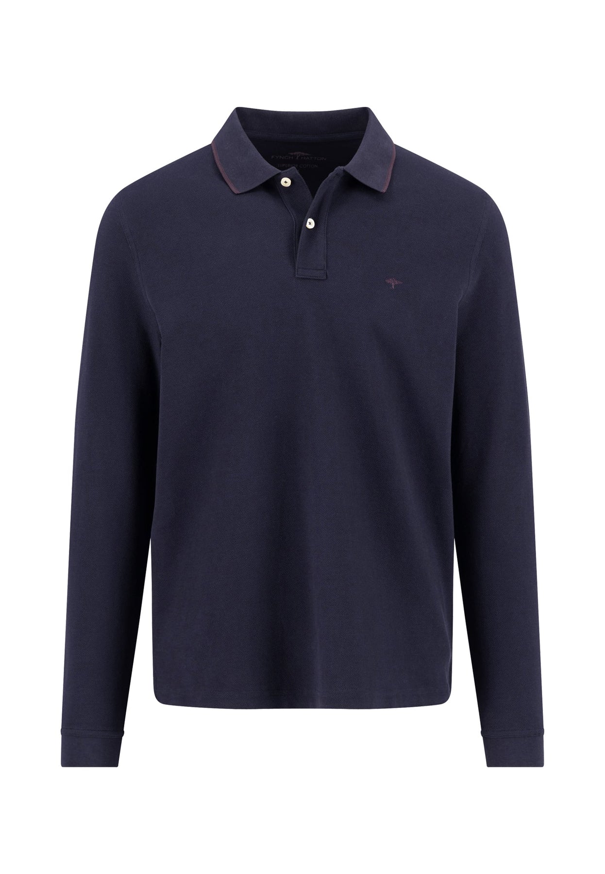 Der Polokragen mit dezentem Kontraststreifen verleiht dem Shirt eine moderne Note, während die Knopfleiste und das kleine Logo auf der Brust den typischen FYNCH-HATTON Stil unterstreichen. Die langen Ärmel und die bequeme Passform machen das Polo ideal für Übergangszeiten – ein stilvolles Basic für deinen gepflegten Freizeitlook.
